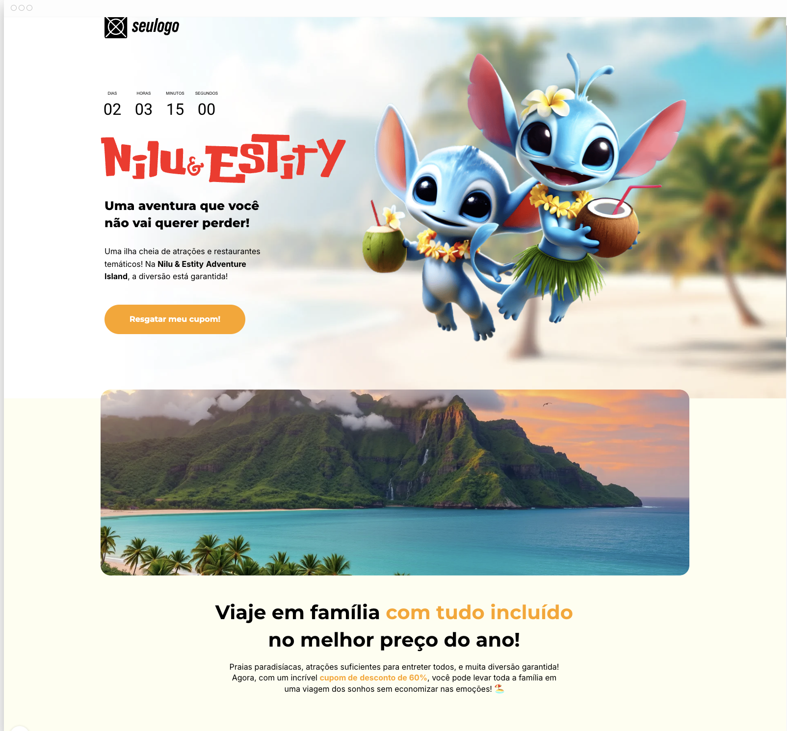 Perfeito para quem quer criar uma página divertida, descontraída, cheia de personalidade — e, claro, com aquele toque de Ohana (porque aqui ninguém fica para trás!).
